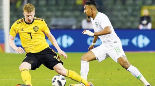 جانب من ودية الأخضر السعودي أمام بلجيكا في بروكسل