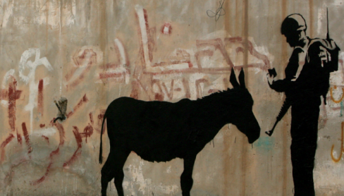 ويركز الفيلم على عمل واحد لبانكسي، وهو حمار مرسوم باللون الأسود، بينما يقوم جندي إسرائيلي بفحص أوراقه، في إشارة ساخرة للأمن المشدد الذي تفرضه إسرائيل، وكيف اختفى هذا العمل ذات يوم من على الجدار الخرساني.