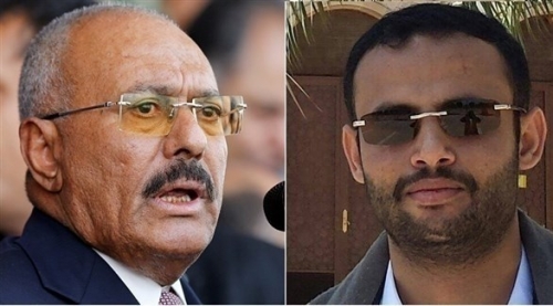 مهدي المشاط يمين الصورة والرئيس اليمني الراحل علي عبد الله صالح يسارها (أرشيف)