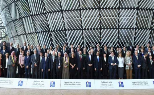 مشاركون في مؤتمر الدول المناحة لسوريا في بروكسل في 25 ابريل 2018