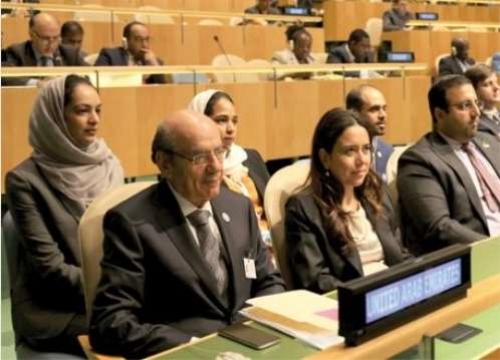 وتلى زكي أنور نسيبة، وزير دولة في الإمارات، بيانا أمام الاجتماع الرفيع المستوى الذي عقدته الجمعية العامة للأمم المتحدة، أمس الأول، بمقرها الرئيسي في نيويورك بشأن مسألة «بناء السلام والحفاظ على السلام».