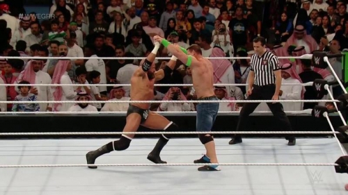 ونجح جون سينا في الإطاحة بترابل إتش في أول نزال أقيم على أرض "ملعب الجوهرة المشعة" في استاد مدينة الملك عبدالله الرياضية في جدة بالمملكة العربية السعودية.