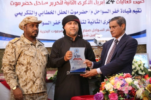 جاء ذلك خلال الحفل الخطابي والتكريمي، الذي أقامته قيادة قوات خفر السواحل بمحافظة حضرموت، بمناسبة الذكرى الثانية لتأسيس القوة، وبالتزامن مع احتفالات حضرموت بالذكرى الثانية لتحرير مدينة المكلا، عاصمة المحافظة، ومديريات ساحل حضرموت من سيطرة تنظيم القاعدة الإرهابي.