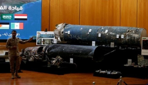 متحدث التحالف يعرض بقايا صاروخ إيراني أطلق على السعودية