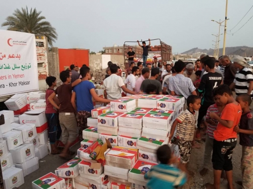 مساعدات غذائية لأهالي خور مكسر من الهلال الأحمر الإماراتية