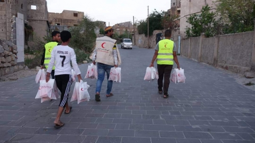 وجبات غذائية من الهلال الأحمر للصائميين في تعز