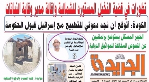 تصريحات يوسف الكودة على الصفحة الأولى من الجريدة السودانية (الجريدة)