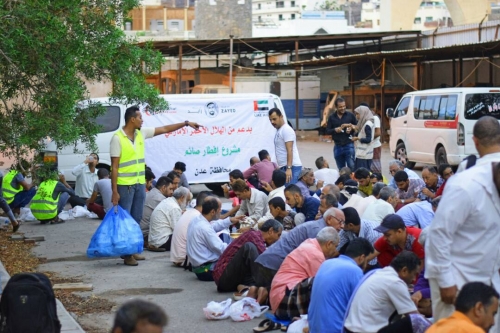 تواصل هيئة الهلال الأحمر الإماراتي تنفيذ سلسلة الإفطارات الجماعية التي تقيمها يوميا في عدن وبقية المحافظات اليمنية المحررة طيلة شهر رمضان المبارك .