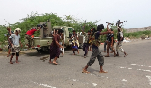 عناصر من المقاومة المشتركة يحتفلون بالنصر على الحوثي