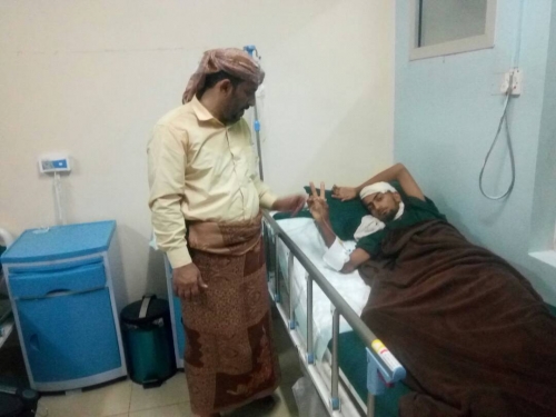 الجريح صالح رياض منصور والجريح محمد جعبل واخرون في قسم الترقيد من ابناء العاصمة الحره عدن بمستشفى عدن الألماني وفي زيارته تفقد على حالتهم الصحيه وقام بتقديم مساعدة ماليه متواضعة للجرحى وهنيهم بدخول ايام العيد .
