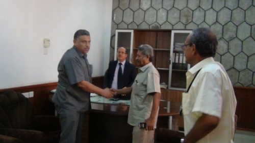 كما التقى امين المجلس المحلي بمدير عام مكتب الخدمة المدنية بعدن عبدالحكيم محمد صالح وموظفي المكتب وتبادل معهم التهاني بحلول عيد الفطر المبارك ونقل لهم تحيات وتهاني فخامة الرئيس عبدربه منصور هادي رئيس الجمهورية ودولة رئيس مجلس الوزاء الدكتور احمدعبيد بن دغر بهذه المناسبة.