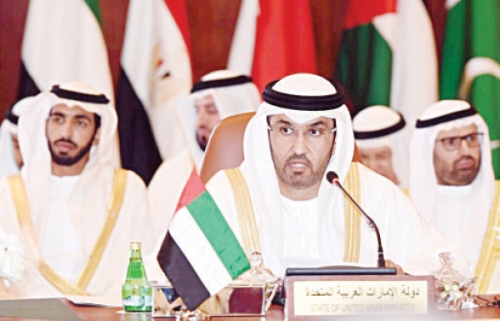 سلطان الجابر خلال اجتماع وزراء إعلام دول التحالف العربي في جدة