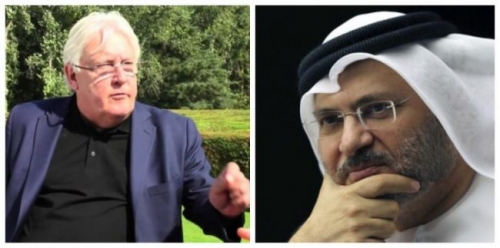 وزير الدولة الإماراتي للشؤون الخارجية أنور قرقاش و مارتن جريفيث