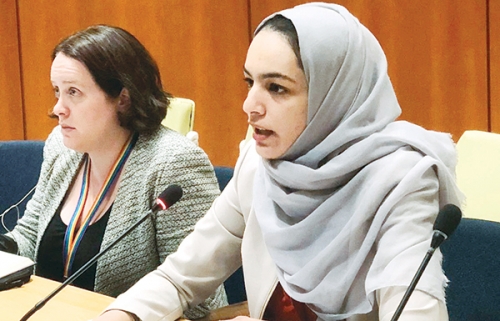 ميسون الدح عضو وفد الدولة لدى الأمم المتحدة خلال الاجتماع