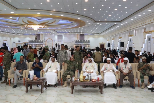 حضر الحفل طيب الشامسي ومحمد نصر الشاذلي واللواء شلال شايع وعدد من عمداء وأساتذة كليات في جامعة عدن