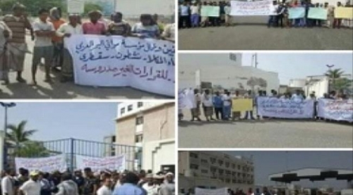 وقفة احتجاجية لموظفي ميناء المكلا