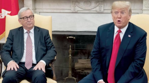 وهذه التغريدة التي أراد بها ترمب استقبال يونكر تعني أنه مصرّ على الضغط، وحجته أن العجز التجاري مع أوروبا يبلغ 150 مليار دولار سنوياً، وأن الرسوم على السيارات مثلا 10 في المائة أوروبياً مقابل 2.5 في المائة فقط أميركياً.