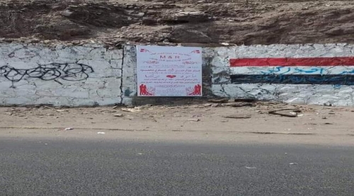 تداول نشطاء في مواقع التواصل الاجتماعي صورا تظهر هاشتاج ودعوة زفاف نصبت في شوارع مدينةعدن، لأول مرة.