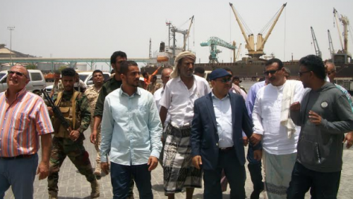 تفقد صباح اليوم نائب وزير الصناعة والتجار الدكتور سالم الوالي ومدير مكتبه راشد حازب ميناء المعلا والحاويات بالعاصمة عدن بمعية نائب مدير الهيئة العامة للمواصفات والمقاييس وليد عبدالعزير ومدير الرصيف والساحات احمد حسين ومديرامن الميناء العقيد شلال الشوبجي .