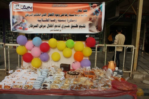 أقامت مبادرة بسمة رضا الطلابية طبق خيري مساء اليوم أمام الحجاز مول بعدن من جل كسوة اطفال مرضى السرطان في عدن ، يأتي ذلك بهدف مساعدتهم في ظل أرتفاع الاسعار للملابس .