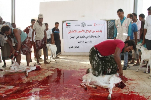 يذكر أن توزيع الأضاحي من قبل الهلال الأحمر الإماراتي الذراع الإنساني في اليمن يأتي استمرارا لجهود الإغاثة الشاملة لأبناء الساحل الغربي في كامل المناطق وخاصة المحررة حرصا من دولة الإمارات الشقيقة على توفير حياة كريمة للفقراء والمعدمين والمتضررين من آثار الحرب الانقلابية على امتداد الساحل الغربي .