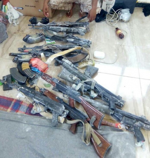 اسلحة ومتفجرات تم العثور عليها مع مهربين اسلحة بعدن