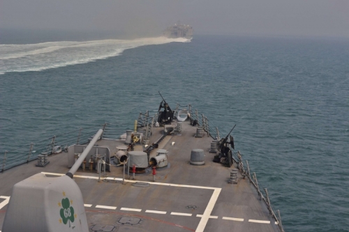 وقال قائد البحرية في الحرس الجنرال علي رضا تنكسيري إن إيران تراقب السفن العسكرية والتجارية على السواء، ولا تستبعد إغلاق المضيق لوقف عمليات الشحن البحري عبر الخليج. فالتهديد بإغلاق مضيق هرمز الاستراتيجي أو السيطرة عليه، ورقة دأبت إيران على التلويح بها مع كل أزمة تواجهها.