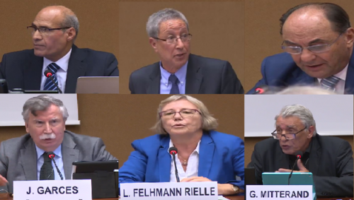 أنغريد بتانكورت، سياسية ومرشحة الرئاسة الكولومبية سابقا، طاهر بومدرا، الرئيس السابق لمكتب حقوق الإنسان في بعثة الأمم المتحدة لمساعدة العراق ومدير العدالة في ضحايا مذبحة عام 1988 في إيران (JVMI) ولورنس فيلمان ريل، عضو في البرلمان الفيدرالي السويسري وخوان غارسه، محام دولي والمستشار السابق للرئيس التشيلي سلفادور أليندي وجيلبرت ميتران، رئيس مؤسسة دانيل ميتران (فرانس ليبرتي) Fondation Danielle Mitterrand - فرنسا Libertés وألخو فيدال كوادراس، نائب رئيس البرلمان الأوروبي (1999-2014) ورئيس اللجنة الدولية للبحث عن العدالة (ISJ) وإليزابيتا زامباروتي، الرئيسة المشتركة لرابطة لا تمسوا قابيل، نائبة إيطالية سابقة و د.سنابرق زاهدي مسؤل لجنة القضاء في المجلس الوطني للمقاومة الايرانية