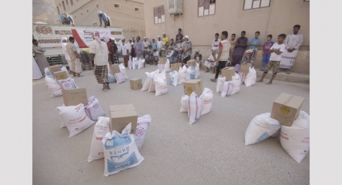 الهلال الإماراتي يوزع مساعدات غذائية بحضرموت