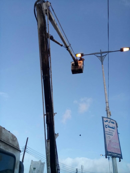 نفذت فرقة صيانة الانارآت اعمال الصيانة للانارات بمديرية الشيخ عثمان بعدن وذلك بتوجيهات من الاستاذ / احمد محضار أحمد مدير عام مديرية الشيخ عثمان وباشراف الاخ / أياد قيراط مدير الانارة في المديرية حيث باشر عمال الصيانة لصيانة الانارات في شارع مسواط (مسجد النور ) ابتداء من المجلس المحلي وشارع التربية الى جولة