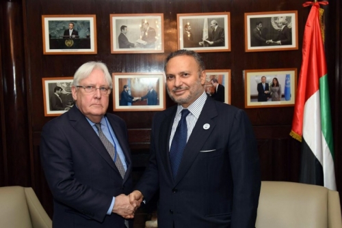 غريفيث يبحث مع قرقاش تنشيط مسار السلام في اليمن