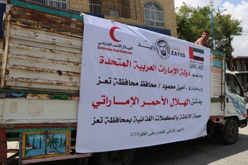 هذا وتواصل دولة الإمارات العربية المتحدة دعمها لمحافظة تعز بواسطة الهلال الأحمر الإماراتي، منذ انقلاب الحوثيون على الحكومة الشرعية وفرضهم حصاراً خانقاً على المحافظة وتسببهم بأزمة خانقة للشعب اليمني وضعت في ذيل التصنيف العربي والعالمي في قائمة الدول الفقيرة.