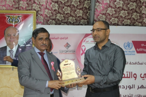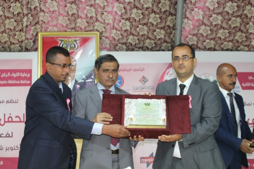 حيث منح المحافظ درع المحافظة للمهندس وهيب العزب المدير العام للشركة العربية اليمنية للإسمنت المحدودة تقديراً لإسهاماتها في المجال الاجتماعي ودعمها للعلاج الكيماوي لمرضى السرطان لهذا العام عبر مؤسسة حضرموت لمكافحة السرطان (أمل) بمنحة بلغت 150 مليون ريال ودعمها لعدد من المراكز الطبية لعلاج الأمراض المستعصية وتقديم العلاجات اللازمة للمرضى المصابين بالأمراض الصعبة .