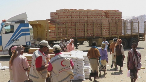 الهلال الإماراتي تسير قافلة إغاثية لمنطقة الخبر بأبين