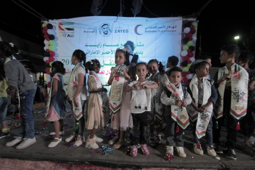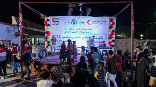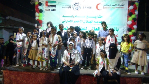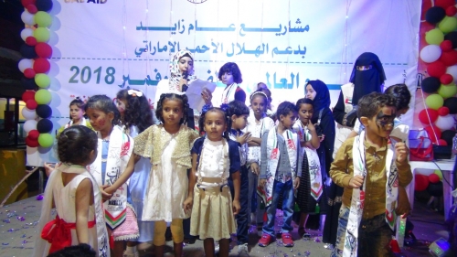 أقام الهلال الأحمر الإماراتي فعالية احتفالية بعنوان "بسمة اطفال الابطال تهمنا" بمسرح الحمراء كمرحلة أولى ل 100 من الأطفال الأيتام وبعض أبناء الشهداء بالتنسيق مع جمعية الحياة للتدخل المبكر لذوي الاحتياجات الخاصة بعدن .