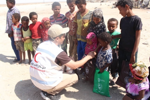 الهلال الإماراتي يوزع هدايا للأطفال النازحين غرب عدن