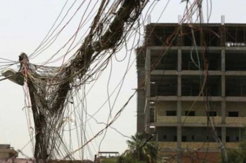 أشرطة كهرباء مبعثرة ممتدة من مولد كهرباء في أحد أحياء بغداد