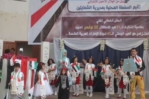 احتفلت السلطة المحلية ومكتب الثقافة بمديرية الشمايتين التربة جنوب محافظة تعز بالعيد ال 51 لاستقلال اليمن 30 نوفمبر المجيد و العيد الوطني ال 47 لدولة الامارات العربية المتحده 2 ديسمبر بدعم الهلال الأحمر الإماراتي .