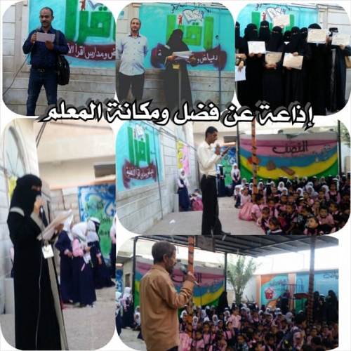 وتضمنت الإذاعة فقرات شعرية ومسابقات تعليمية تخللتها كلمات وضحت مكانة وفضل المعلم العظيمة في بناء الأوطان ،