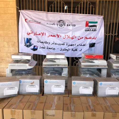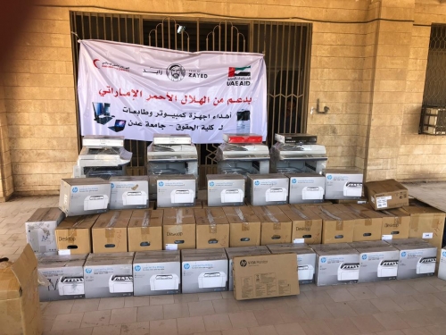 هلال الإمارات يرفد كلية حقوق عدن بمعدات تعليمية