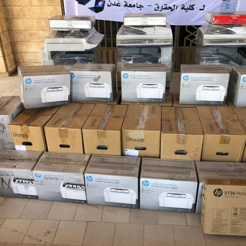 وتضمن الدعم الذي قدمه الهلال الأحمر الإماراتي وتسلمه عميد كلية الحقوق د/محمد صالح محسن مواد متعددة منها (16) كمبيوتر مكتبي وطابعة ، و(4) أجهزة لابتوب وطابعة و (4) اسكينار و(4) بروجكتر مع لوحات عرض، (4) آلة تصوير ورقي ، و(2) فرش لمكتب العميد والسكرتارية.