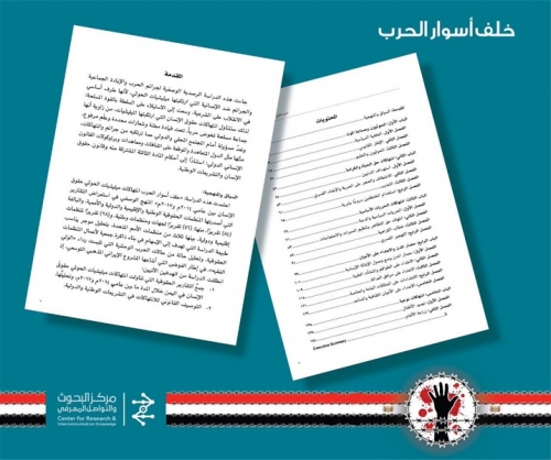تحت عنوان «خلف أسوار الحرب.. انتهاكات الميليشيات الحوثية حقوق الإنسان في اليمن»، أصدر مركز البحوث والتواصل بالمملكة العربية السعودية دراسة استراتيجية في 157 صفحة من القطع المتوسط، إضافة إلى ملخص للدراسة باللغة الإنجليزية، في رصد دقيق لانتهاكات وجرائم ميليشيا الحوثي بحق الشعب اليمني منذ انقلابه على الشرعية اليمنية في 21 سبتمر 2014م، وحتى نهاية 2017؛ حيث تخلص الدراسة إلى ان ميليشيا الحوثي مثلت أسوأ مثال للعنصرية وانتهاكات حقوق الإنسان على مدار تاريخ اليمن.