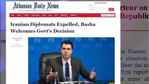 ذكرت «ألبانين ديلي نيوز» عن طرد السفير الإيراني و(رئيس) محطة المخابرات للنظام الإيراني من ألبانيا: تم طرد دبلوماسيين إيرانيين، «باشا » يرحب بقرار الحكومة.