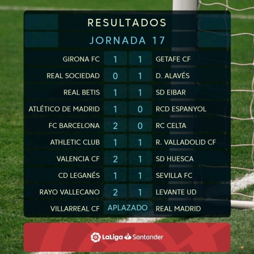 نتائج مباريات الجولة 17 من الدوري الإسباني