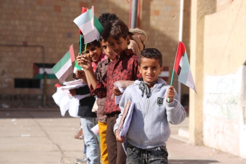توزيع الزي المدرسي في محافظة تعز مقدم من الهلال الإماراتي