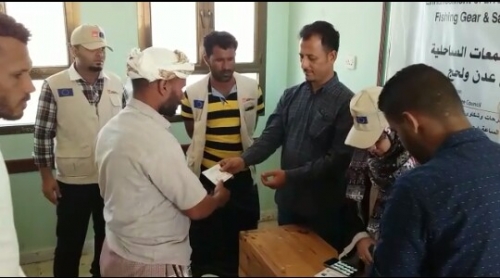 ويتضمن المشروع " توزيع معدات الصيد والسلامة لعدد من صيادي منطقة عمران ورأس عمران الساحلية بمديرية البريقة " .