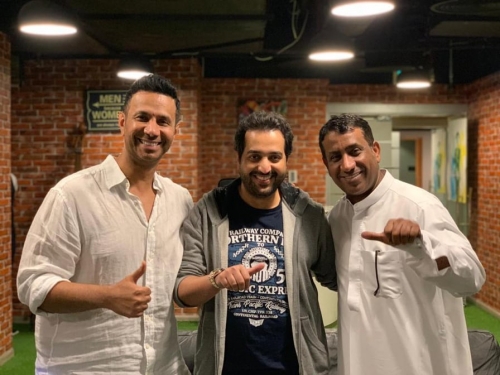 الشاعر علي الخوار مع الفنانيين فايز السعيد وعادل محمود