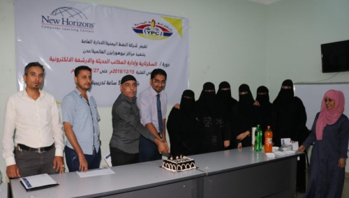 اختتمت اليوم بفرع مراكز نيوهورايزن العالمية للتدريب والتاهيل في العاصمة عدن فعاليات الدورة التدريبية الخاصة بمجال السكرتارية وادارة المكاتب الحديثة والارشفة والتي كانت قد استمرت نحو اسبوعين بمشاركة ( 12 ) موظفا وموظفه من الادارة العامة لشركة النفط اليمنية وفرعها في عدن.