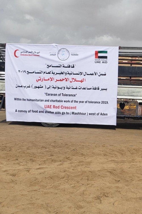 ويأتي ذلك ضمن "قافلة التسامح" التي اطلقها الهلال الأحمر الإماراتي مطلع يناير بالتزامن مع إعلان دولة الإمارات العام 2019 عام التسامح ،وتستهدف أكثر من 60 منطقة وقرية نائية تمتد على الشريط الساحلي بين عدن ولحج وتستهدف مئات الأسر.