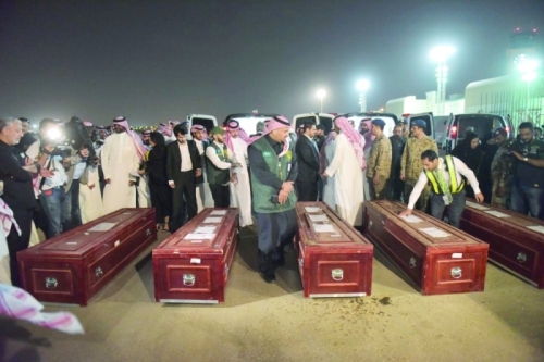 واستقبلت قاعدة الملك سلمان الجوية بالرياض، ليل الأول من أمس، جثامين 5 من خبراء الألغام من مختلف الجنسيات، اثنان من جنوب أفريقيا وواحد من كوسوفو وآخر من كرواتيا، بينما الخامس من البوسنة، لقوا حتفهم إثر انفجار ألغام، في أثناء أداء عملهم في مأرب باليمن، ما عدّه وزير يمني «انتهاكاً صارخاً للقانون الدولي».